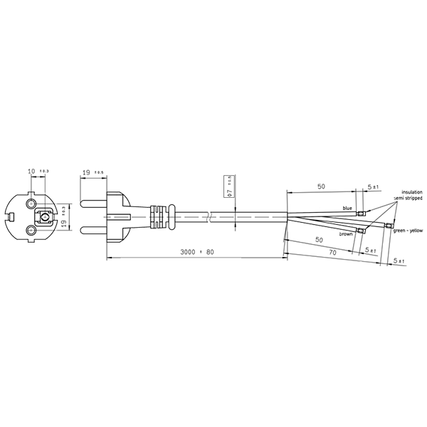 Mains cable Schuko plug