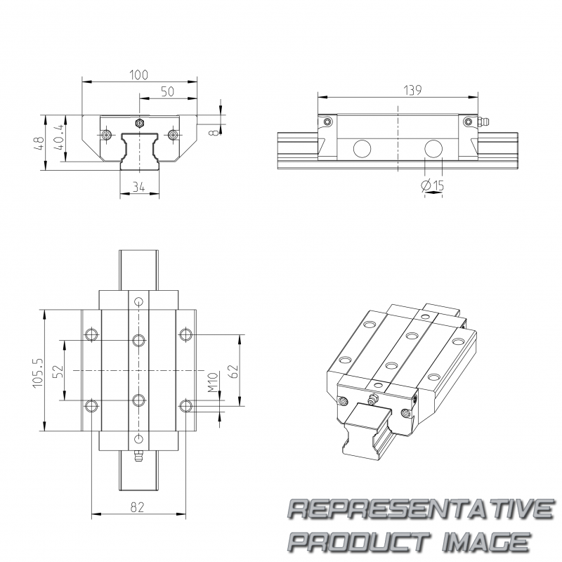 Altura del bloque de rodadura con riel guía 48 mm