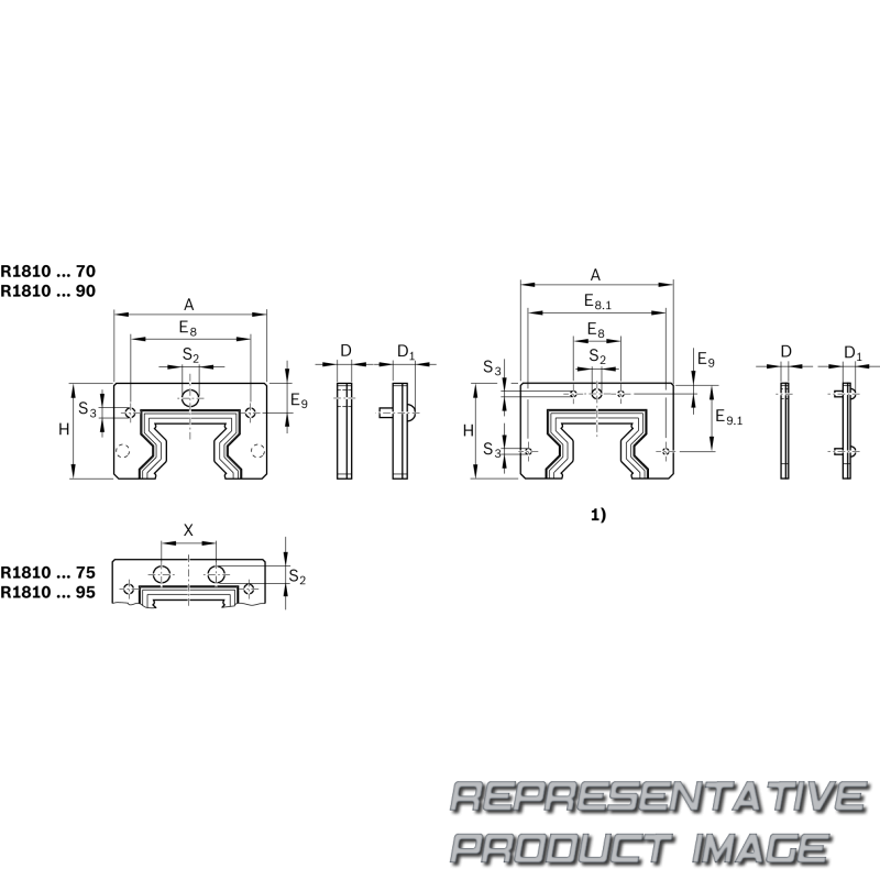 | Dimensión E9 (perfiles guía) | 18.2 mm | ||